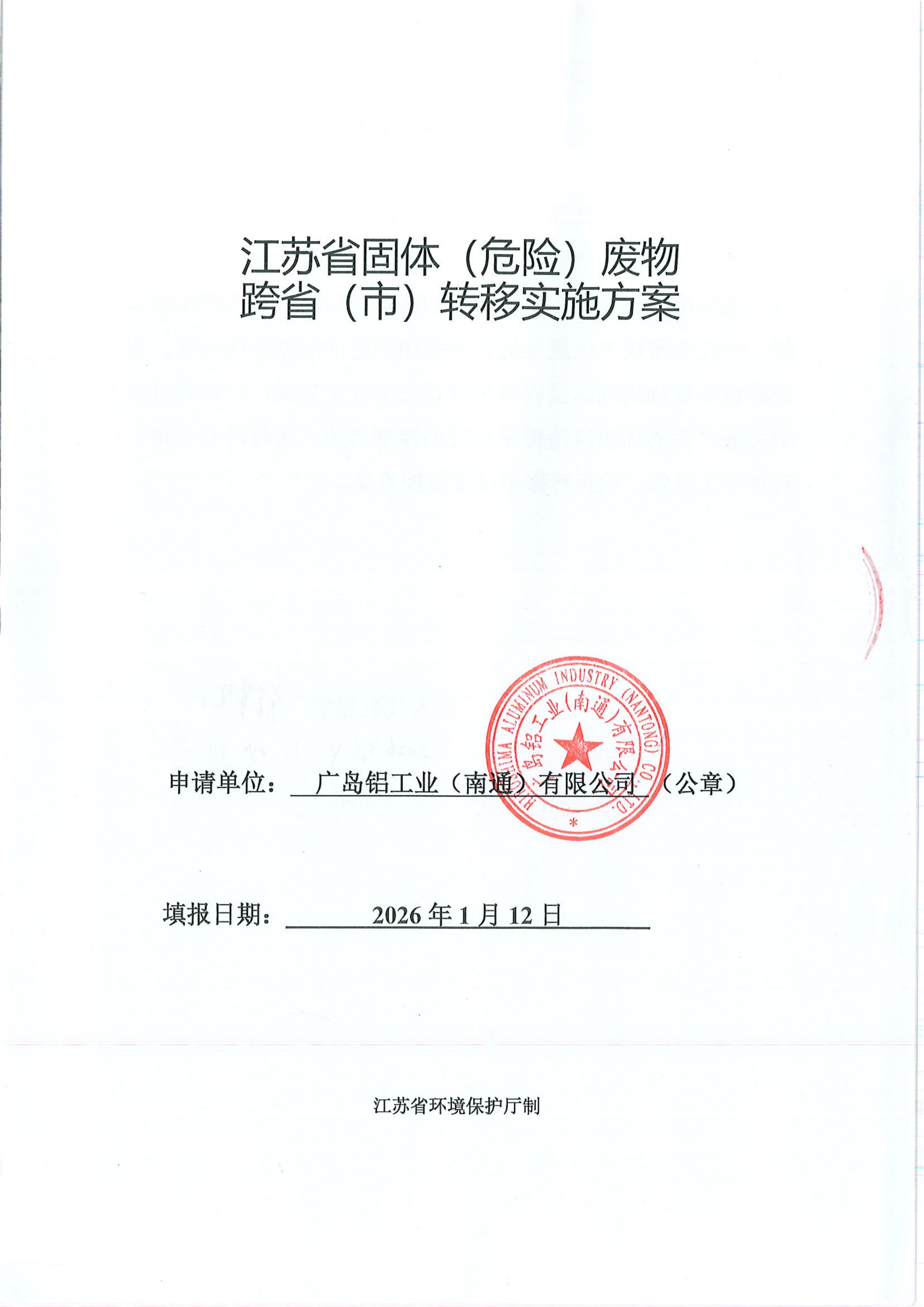 廣島鋁工業(yè)(南通)有限公司固體(危險廢物)廢物跨省轉(zhuǎn)移實(shí)施方案(2026年計(jì)劃)